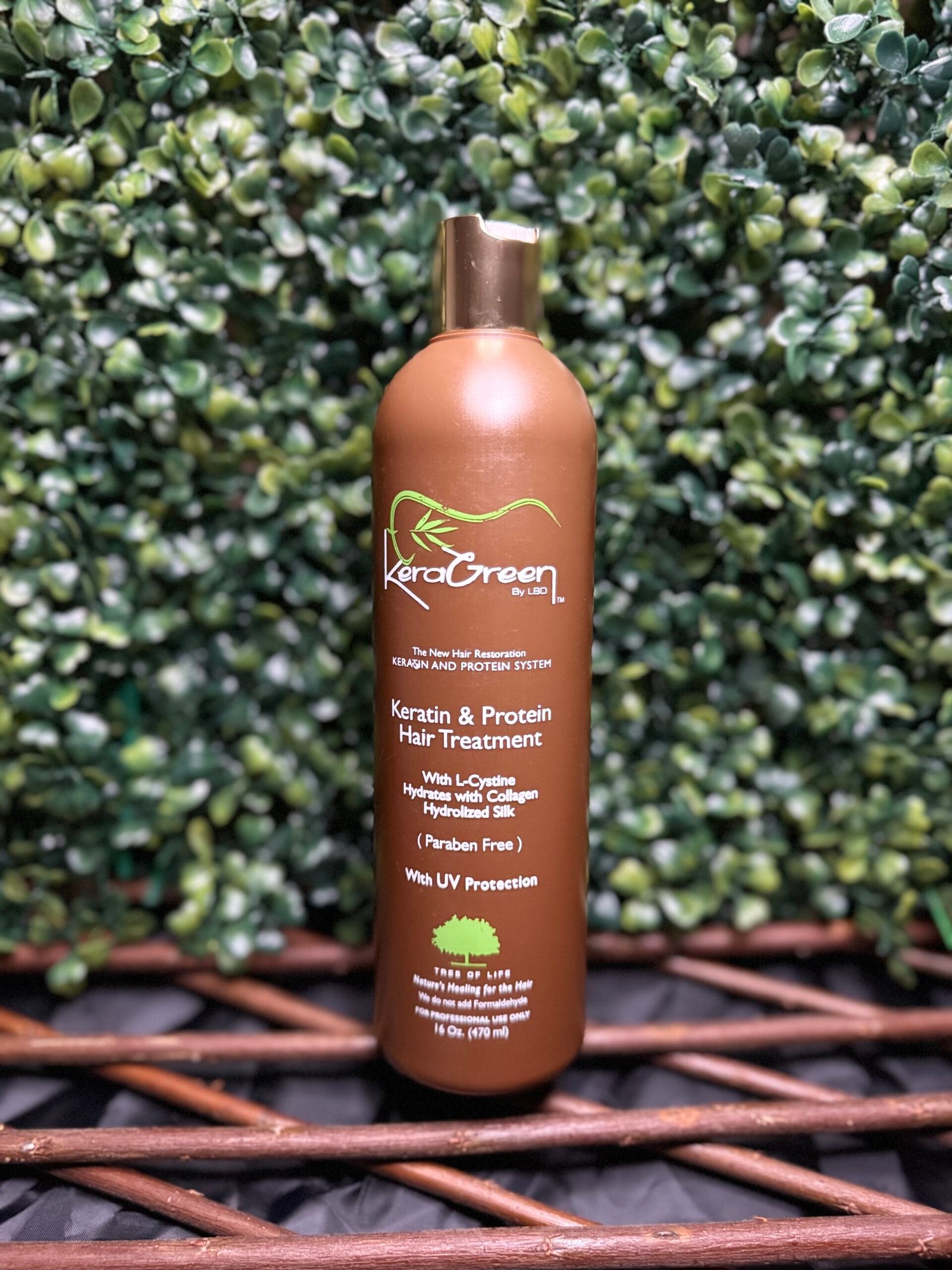 Apply evenly to clean, towel-dried hair. Process according to professional stylist instructions, then style as desired. For best results, maintain with KeraGreen’s keratin-based shampoo, conditioner, and mask.